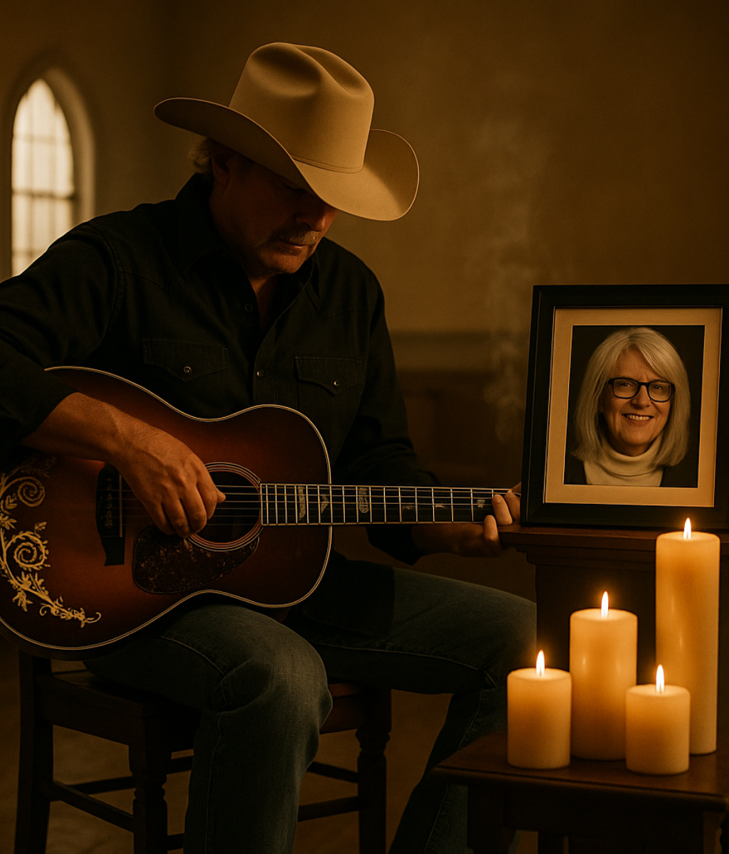 Alan took a deep breath. Then, with the gentlest motion, he began to play “Remember When.” The familiar chords, tender and fragile, floated through the chapel like a prayer. His voice, lower and more fragile than fans were used to hearing, carried something words alone could never express. Every line felt like a conversation with memory — with her, with himself, with the world that had learned from both.