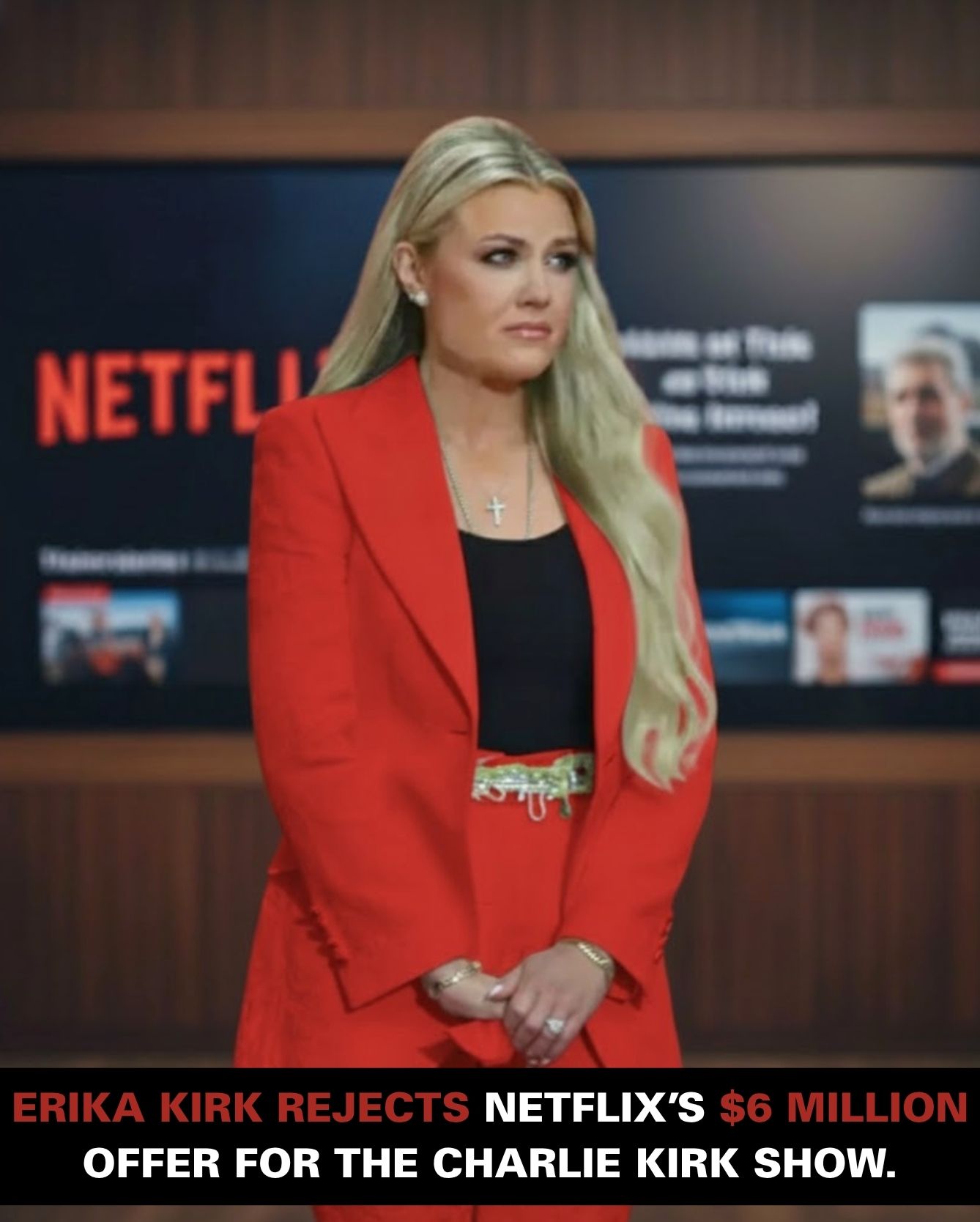 In a stunning move that’s sending shockwaves through Hollywood and the media world, Erika Kirk — widow of the late conservative icon Charlie Kirk — has reportedly turned down a $6 million offer from Netflix to license or develop “The Charlie Kirk Show.”