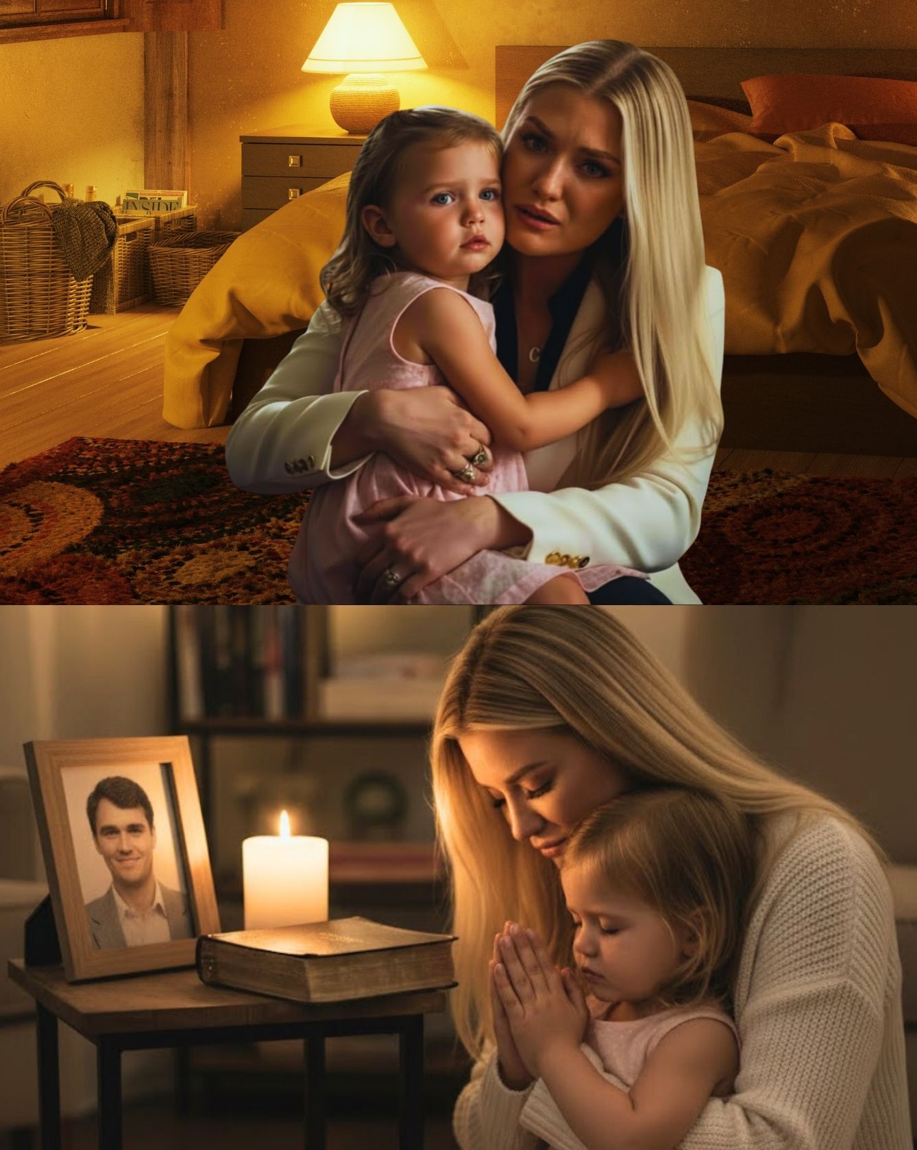 In the softly lit video, Erika sits by a window, holding her young daughter close. Her tone is fragile but steady as she speaks about love, loss, and the final promise Charlie made before his death — a promise that even in the silence, his presence would never fade. “Some days,” she whispers, “the house feels too quiet. But other days… it feels full again. Like he never left.”