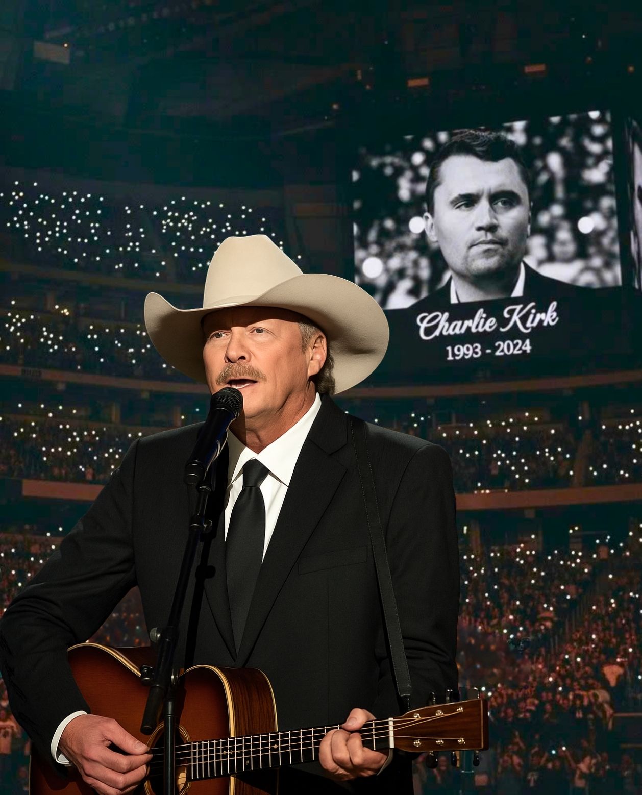 In front of 20,000 fans, country legend Alan Jackson quietly stepped into the spotlight. The roar of the crowd, moments earlier filled with energy, softened into silence as he removed his hat and pressed it gently against his chest. Under the glow of the stage lights, the atmosphere shifted from concert to communion. With a voice steady but heavy with sorrow, Alan began to sing — a heartfelt tribute to Charlie Kirk, the young leader whose sudden passing left a nation in mourning.